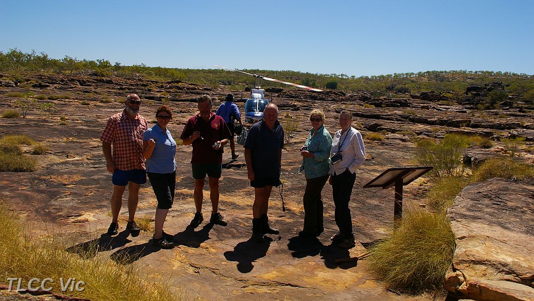 | Geoff, Carolyn, Rob, Athol, Annie & Mary ready to fly over the Mitchell Falls | |
