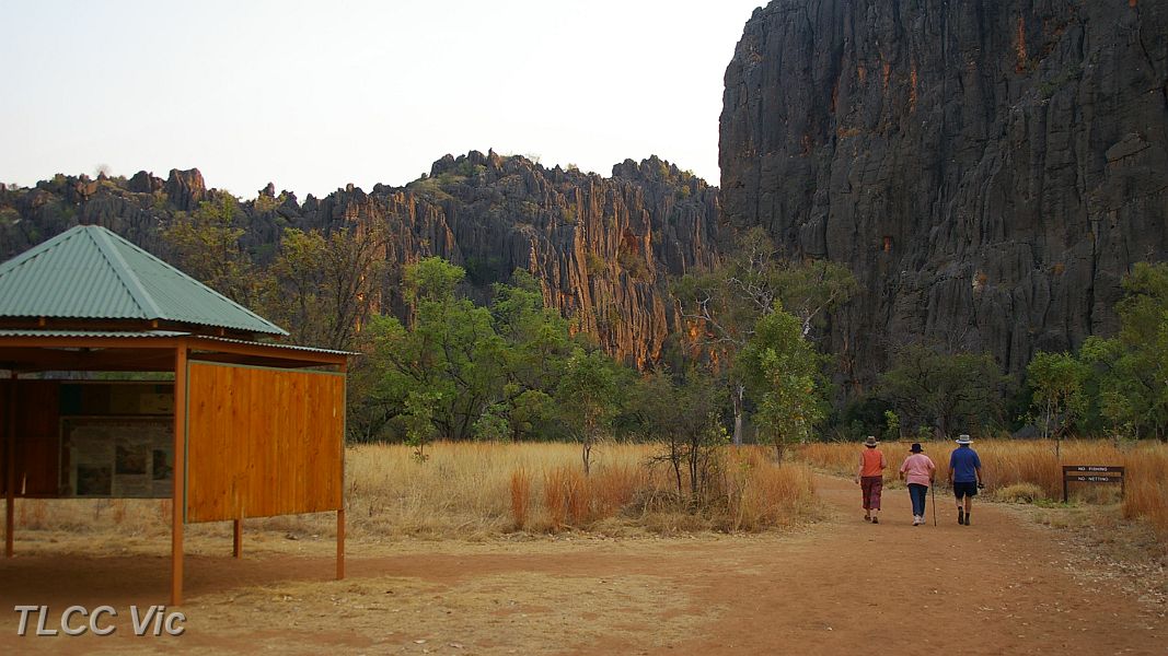 | Carolyn, Ann & Ken take an early morning walk into Winjana gorge | |