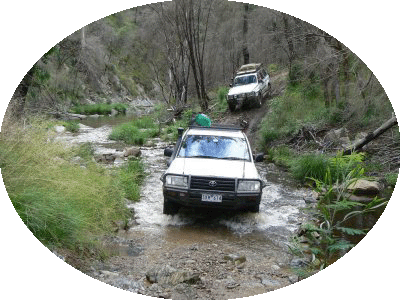 With wet weather expected, the Haunted Stream was a place to visit. Leaving the bitumen just south of Swifts Creek in East Gippsland, our convoy headed down to the stream to enjoy the 54 river crossings before arriving at Dawson City. After enjoying about 10 river crossings, our journey was halted by a temporary track closure near Dogtown due to recent flood damage. With our travel plans quickly revised, we were soon heading up the interesting Stirling track. With lunch finishing with drops of rain, it was time to head off for Camms Top Place. This required some concentration as we headed down the rocky Danes Track before crossing the rising Wentworth River. Camp was set up at Camms Top Place on our own in the rain. Our trip leaders big tarp came to the rescue as everybody squeezed under it for a relaxed happy hour. When the rain finally stopped, the camp fire was started so dinner could be cooked over the warm fire. Sunday morning took us across Danes Creek before taking on the steep climb of Murdering Spur. After a morning tea stop on the Dargo river and a look at Harrisons Cutting, this exciting trip wound up on the Dargo River at Ollys Jump Up.