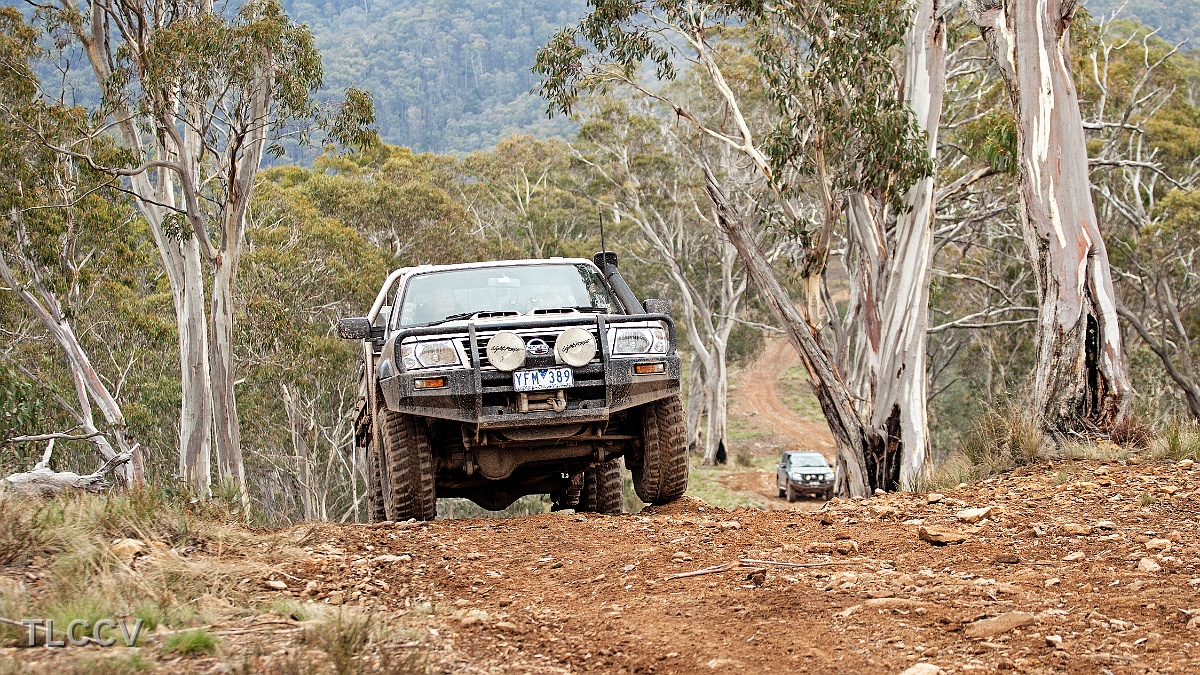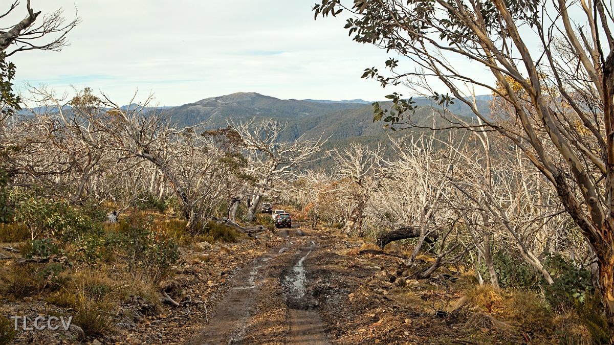 Amongst the dead snow gums heading down to King Valley
