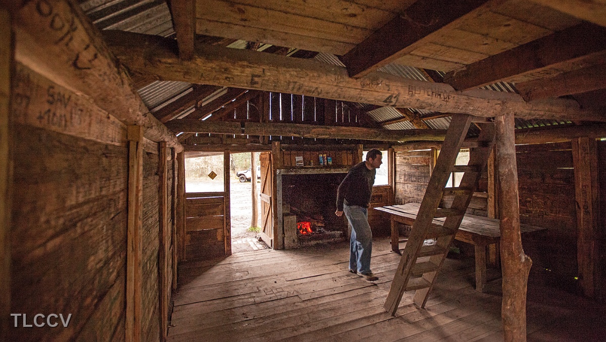 Marcus checks out the inside of Jamieson Hut